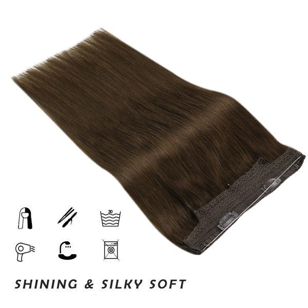 Halo Hair Extensions No Glue Silky Straight Dark Brown #4