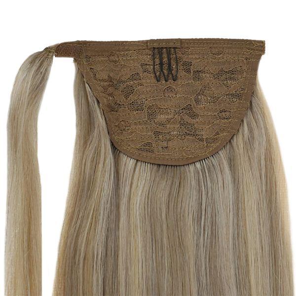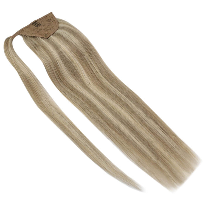 [Ponytail] Clip in Ponytail Human Hair Extensions Blonde Highlighted #16/22