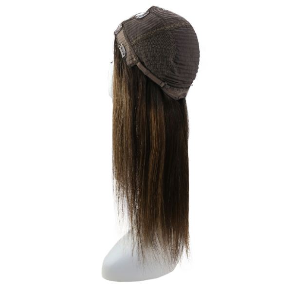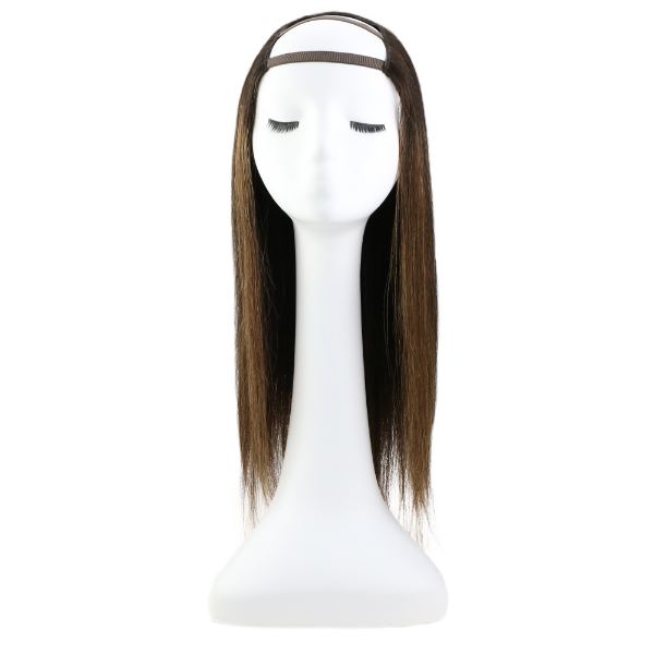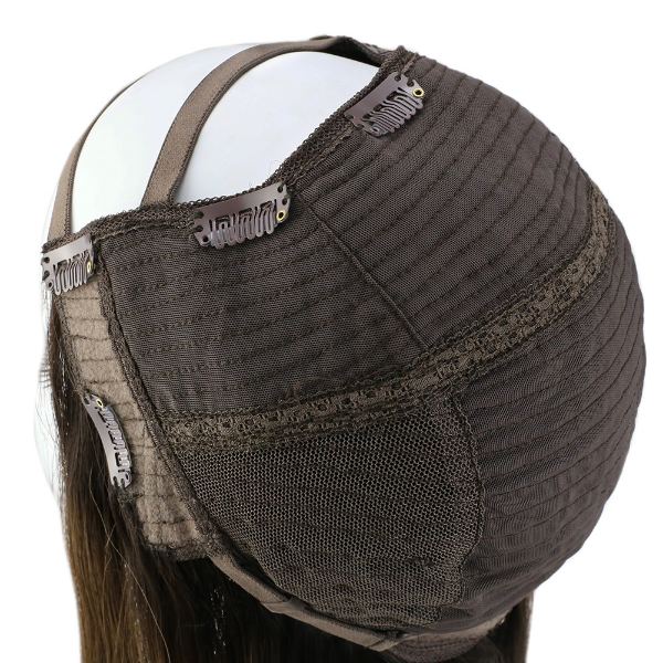 U Part Half Human Wigs With Clips Balayage Brown Highlights #2/6/2