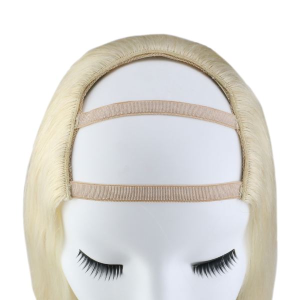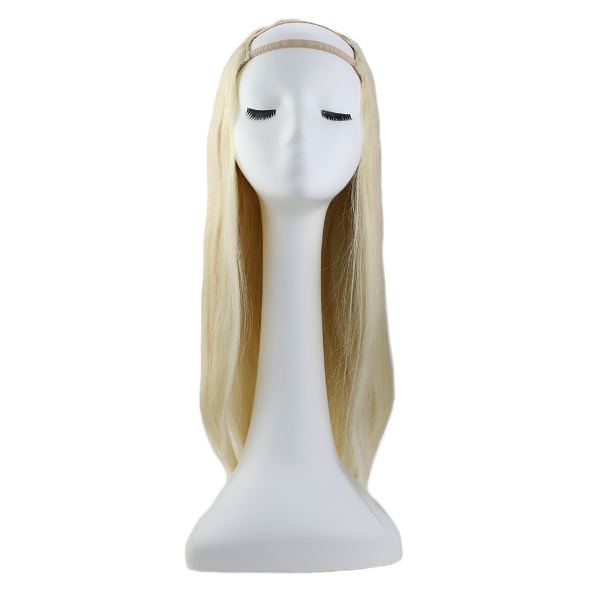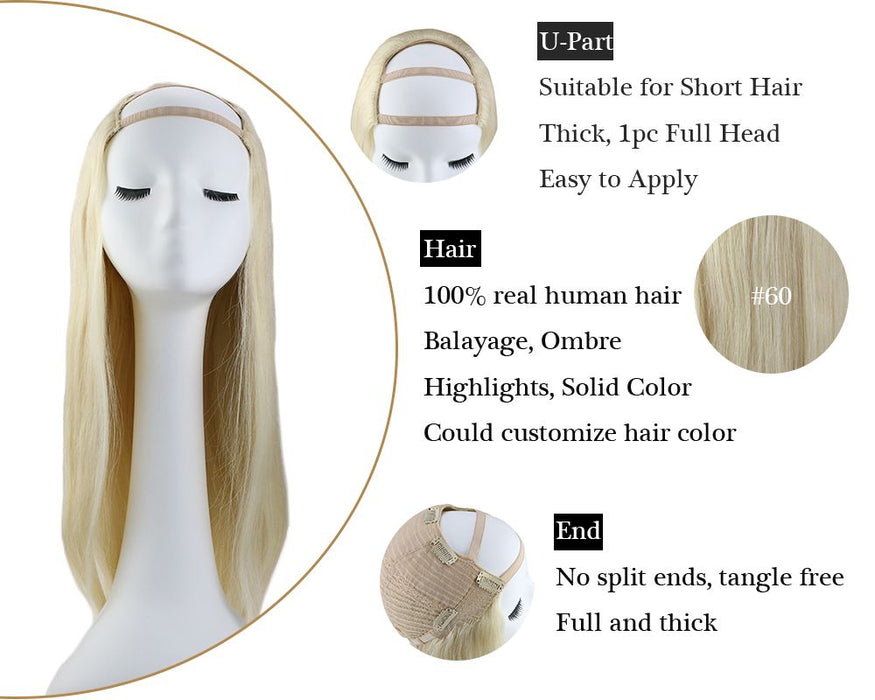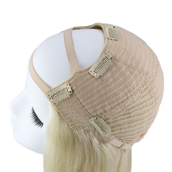 U Part Human Hair Wigs With Clips Bleach Blonde Clip in Half Lace Wigs #60